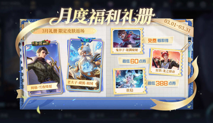 然后官方还返场了两款限定皮肤,没错,就是每个月都会更新的月度福利礼册。这一次返场的两款皮肤,也就是 3 月份的礼册。